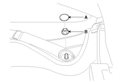 1. Remove the windshield wiper arm and blade after removing a nut (B) and wiper cap (A).