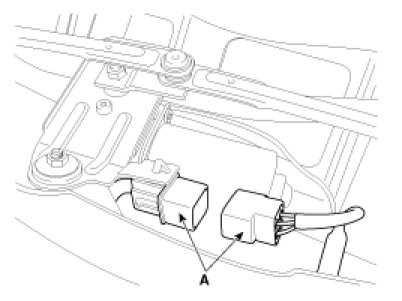 5. Disconnect the wiper motor connector (A) from the wiper motor & linkage assembly.
