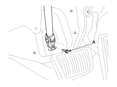 5. Loosen the bolt (A) and then disconnect the universal joint assembly from the pinion of the steering gear box.