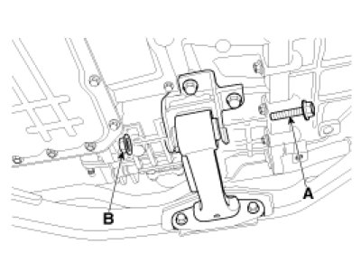 6. Loosen the bolt(A) & nut(B) and then remove the roll rod stopper.