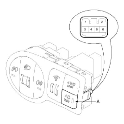 Remove the A/C inverter switch (A) from the lower crash pad switch assembly.