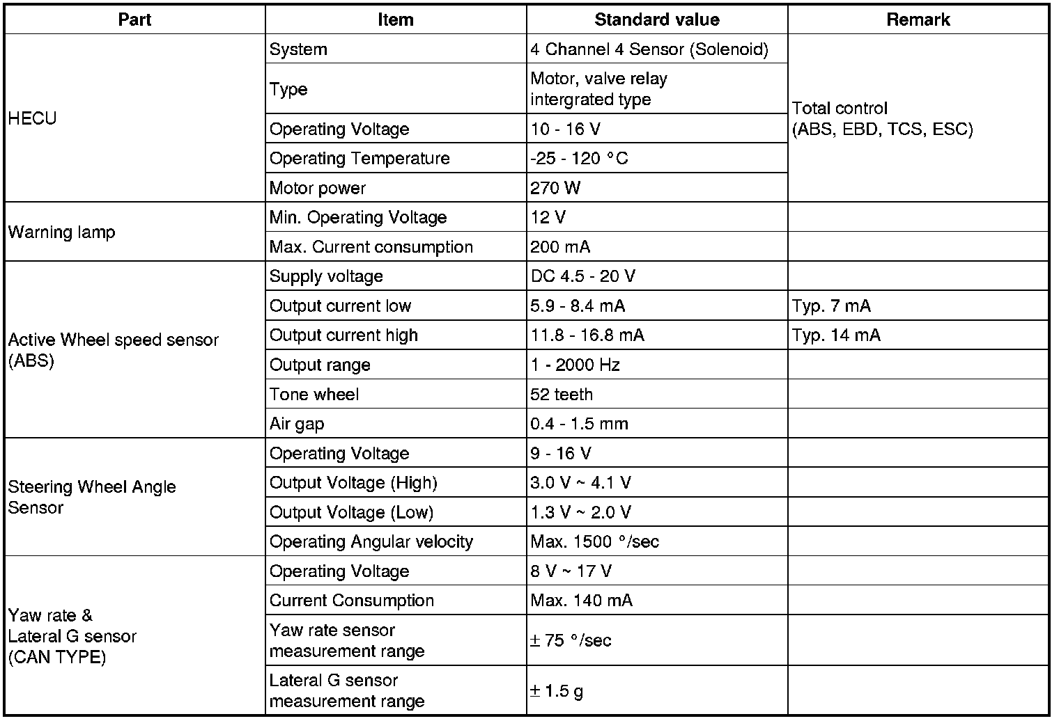 Specification(ESC)