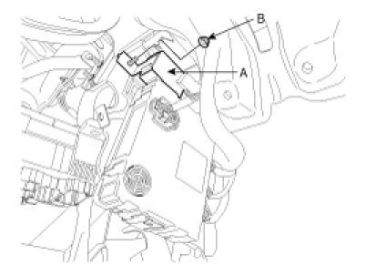 3. Disconnect the 5P connector of the SMARTRA unit and then remove the SMARTRA unit (A) mounted on the left side cowl cross bar. after loosening a shear bolt (B).