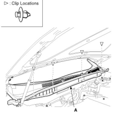 Detach the clips, then remove the cowl top cover (A).