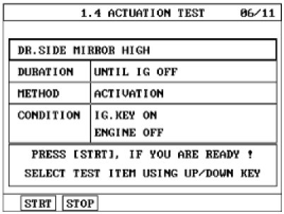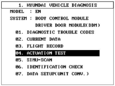 5. To check the input value of door lock switch in force mode, select option "ACTUATION TEST".