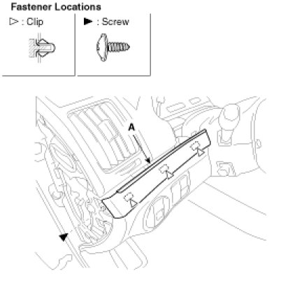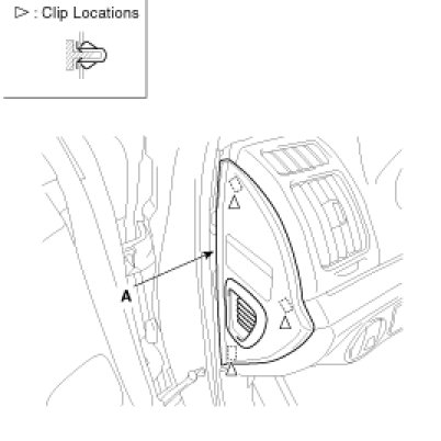 2. Remove the crash pad side garnish (A).
