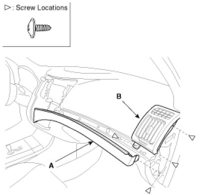 1. Remove the crash pad side cover (A).