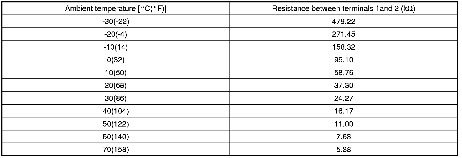 3. Check the resistance of ambient temperature sensor between terminals 1 and 2 whether it is changed by changing of the ambient temperature.