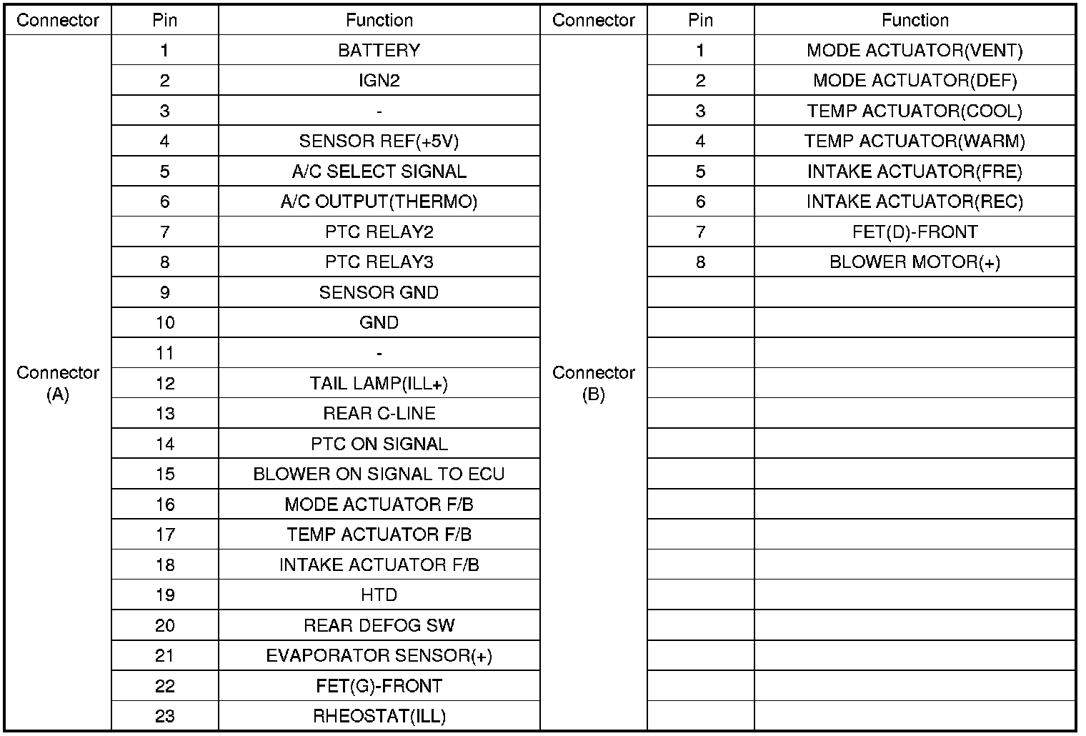 Connector Pin Function