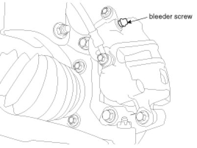 5. Pump the brake pedal several times, and then loosen the bleeder screw until fluid starts to run out without bubbles. Then close the bleeder screw.