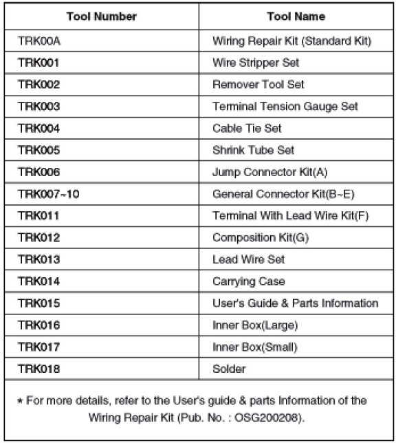 WIRING REPAIRREFERENCE SERVICE TOOLS