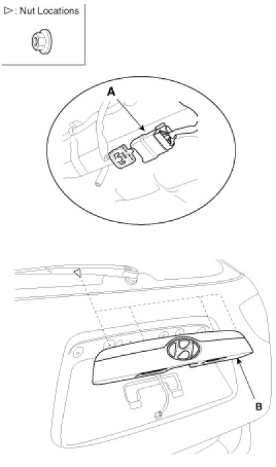 2. After disconnecting the connector (A), remove the power window motor (B).