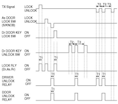 (3) If driver/assist door KEY LOCK switch is turn to ON from OFF, then the Lock output shall be ON to all doors for T1.