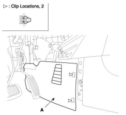 5. Loosening the console mounting screw and clip, remove the console assembly (A).