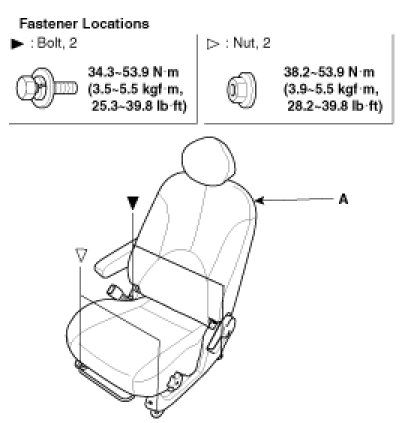 2. After loosening the seat assembly mounting bolt and nut, remove the seat assembly (A).