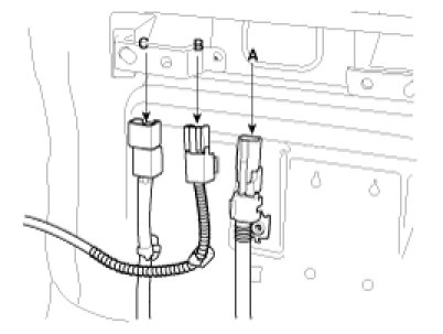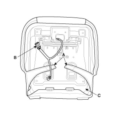 A. Disconnect the airbag connector (A), STP connector (B), Seat belt buckle connector (C) and then remove the seat assembly.