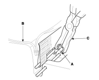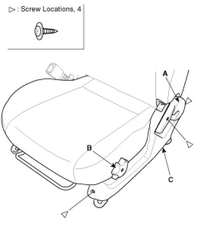 3. Remove (A) the connector(B) then disconnect the protector (A) from cushion frame(C).