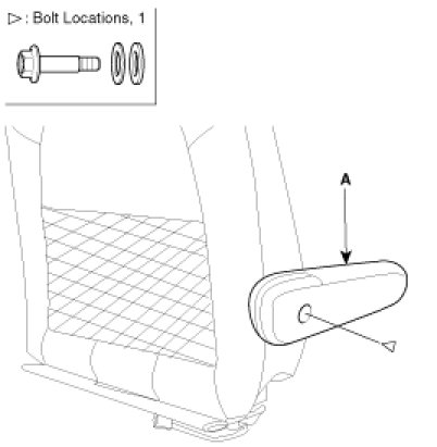 4. After loosening the mounting screw, remove the front seat armrest(A).
