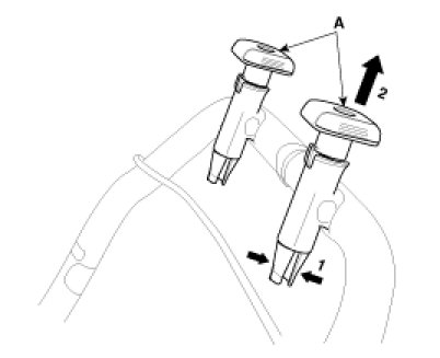 8. Pull out the headrest guides (A) while pinching the end of the guides, and remove them.