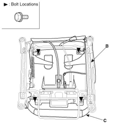 - Set the seat into the most rearward position. Check the front mounting bolt completely.