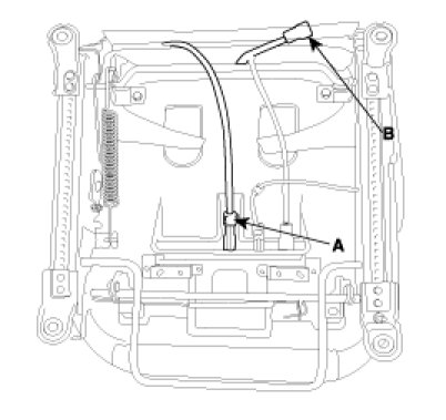 3. Disconnect the seat back frame(B) from seat track assembly(A).