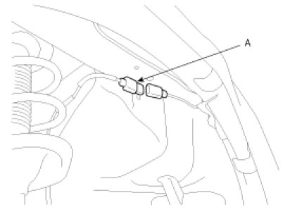 4. Disconnect the front wheel speed sensor connector (A) , then remove the front wheel speed sensor.