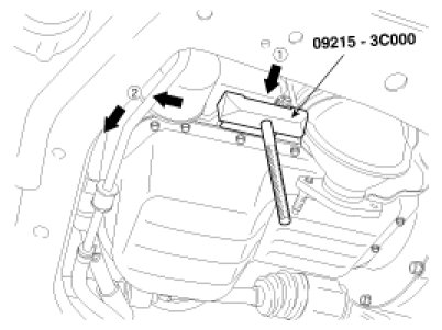 6. Using the SST(09215-3C000) and remove the oil pan.