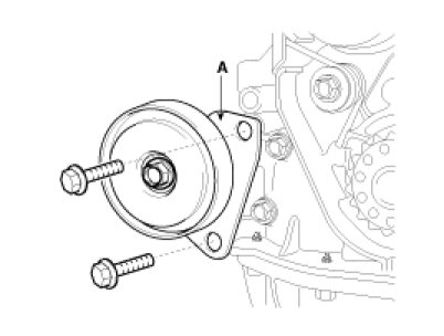 5. Remove the timing belt tensioner(A).