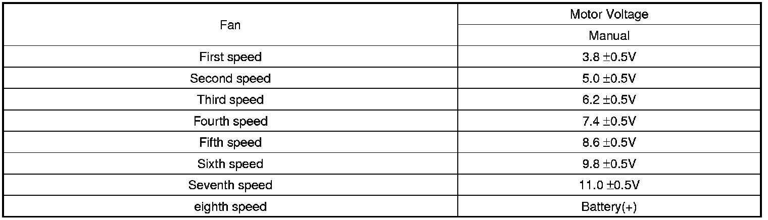 2. Manually operate the control switch and measure the voltage of blower motor between pin 1 and 2.