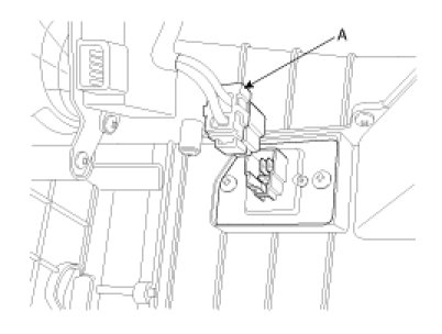 2. Disconnect the power mosfet connector (A) at the connecting part between heater and blower unit.