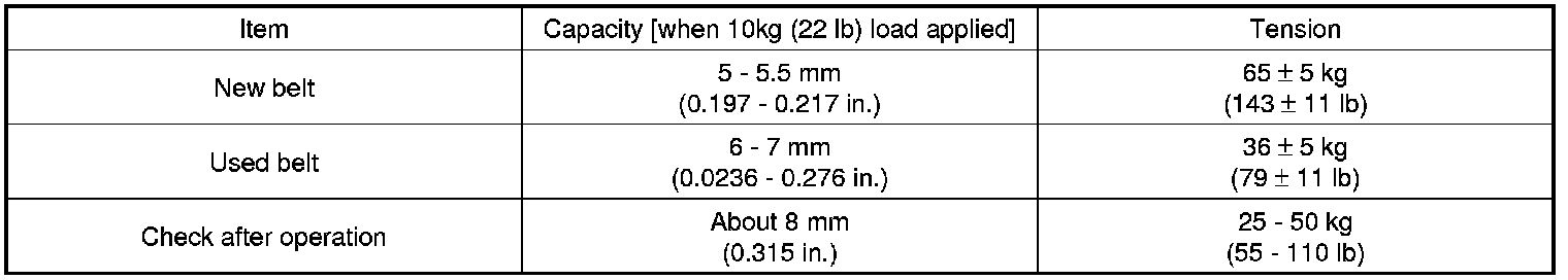 2. Apply a force of 98N (10kgf, 22lbf), and measure the deflection at the mid point (A) between the air condition compressor and crankshaft pulley.