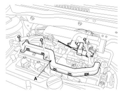 12. Install the timing belt upper cover(A) with 4 bolts(B).