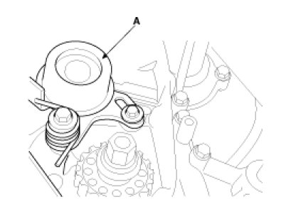 5. Install the idler pulley(A) and tighten the bolt(B) to the specified torque.