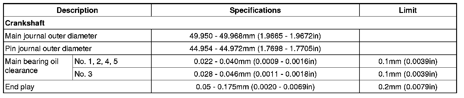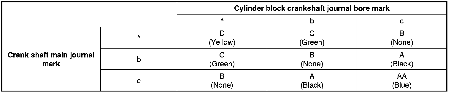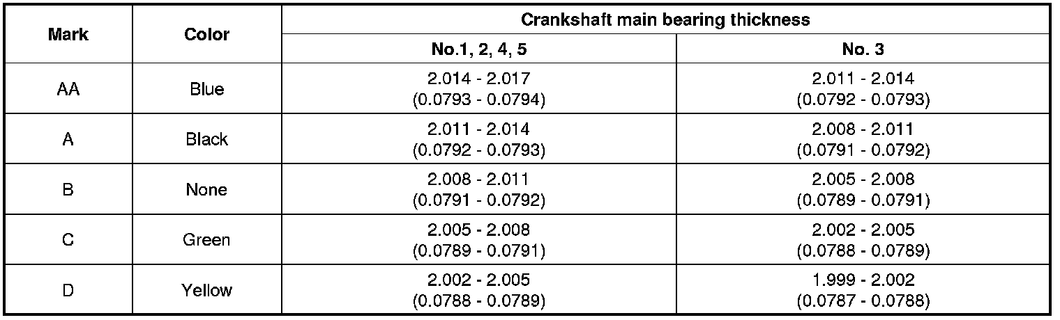 Crankshaft main bearing selection table