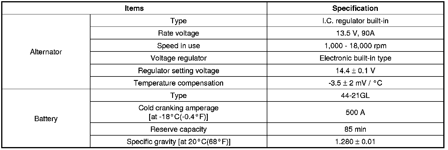 Charging System: Specifications