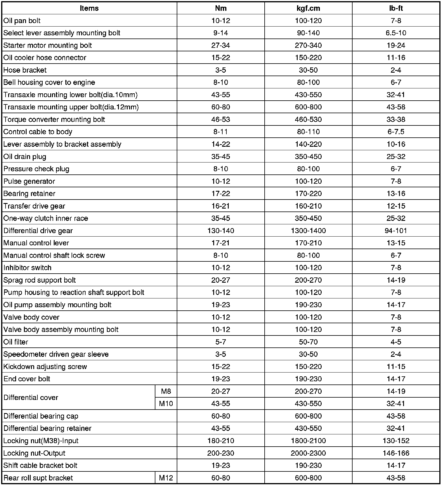 Automatic Transmission/Transaxle: Application and ID: Specifications