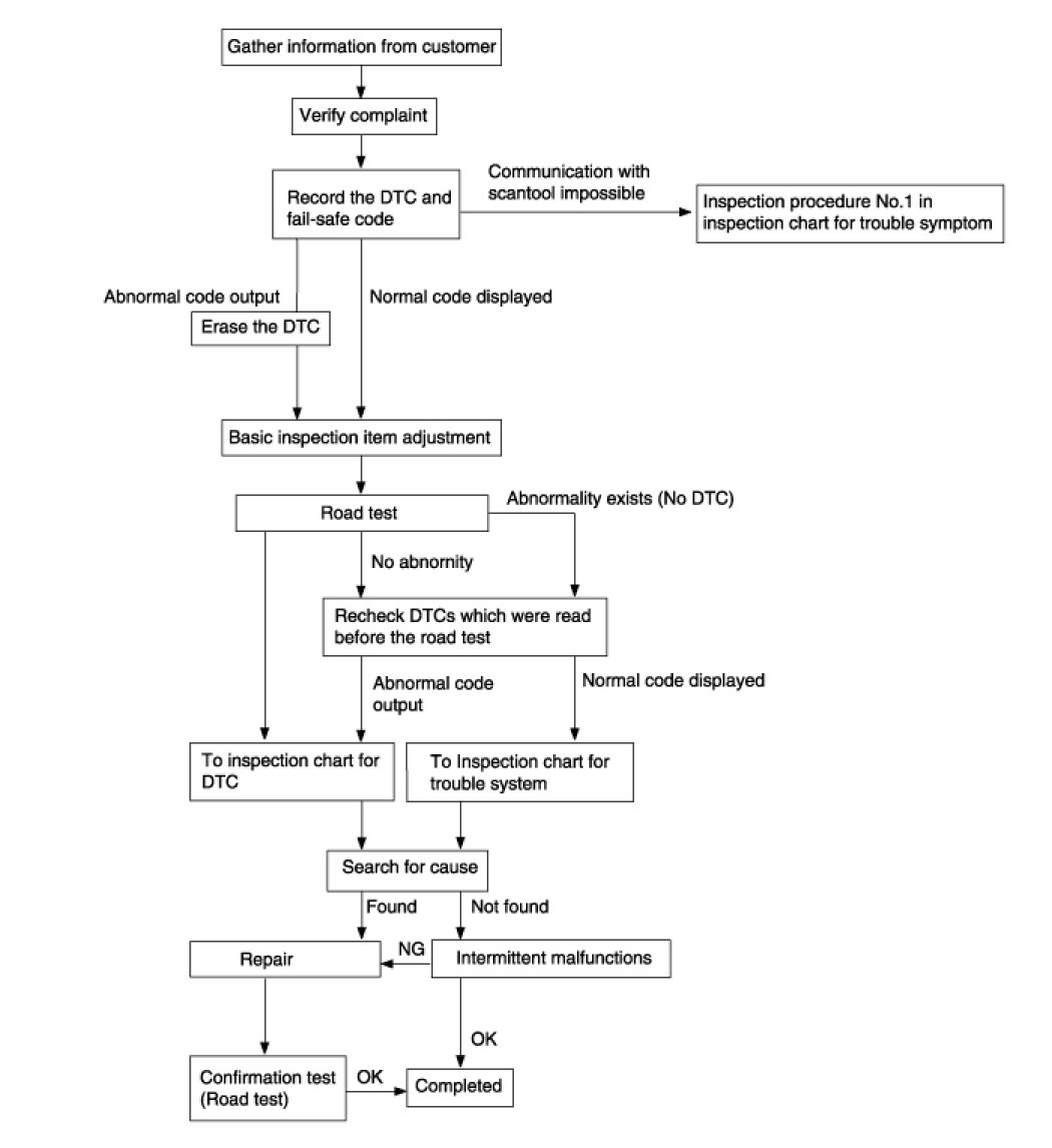 5. Read the output diagnostic trouble codes. Then follow the remedy procedures according to the "DIAGNOSTIC TROUBLE CODE DESCRIPTION" on the following pages.