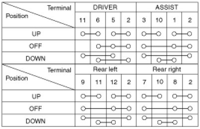 4. Check for continuity between the terminals in each switch position according to the table. If the continuity condition is not normal, replace the switch.