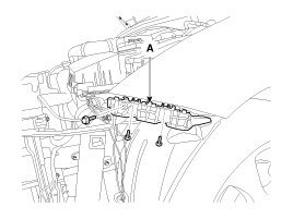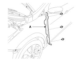 5. After loosening the mounting screws and bolt, then remove the front bumper side mounting bracket (A).