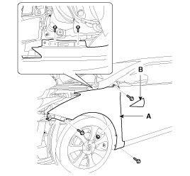 7. After loosening the fender mounting bolts and nut, then remove the fender (A).