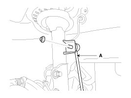 5. Loosen the bolt and then disconnect the universal joint assembly (A) from the pinion of the steering gear box.