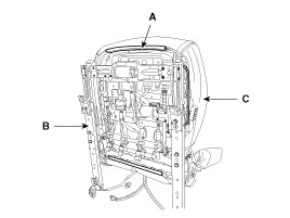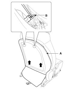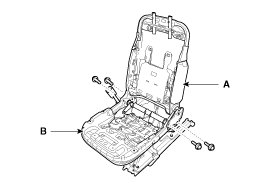 3. After loosening the mounting bolts, then disconnect the seat back frame (A) and seat cushion frame (B).