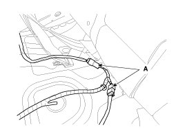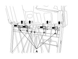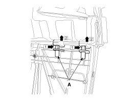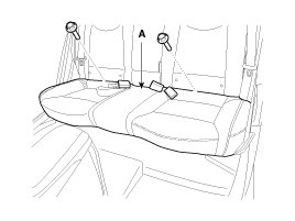 1. After loosening the mounting bolts, then remove the rear seat cushion (A).