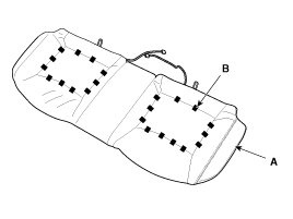 3. After removing the hog-ring clips (B) on the rear of seat cushion and remove the seat cushion cover (A).