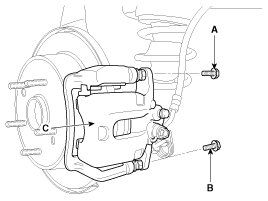 1. Loosen the guide rod bolt (A, B) and then remove the rear caliper body (C).