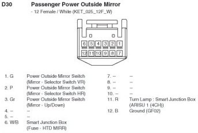 D30 Passenger Power Outside Mirror:
