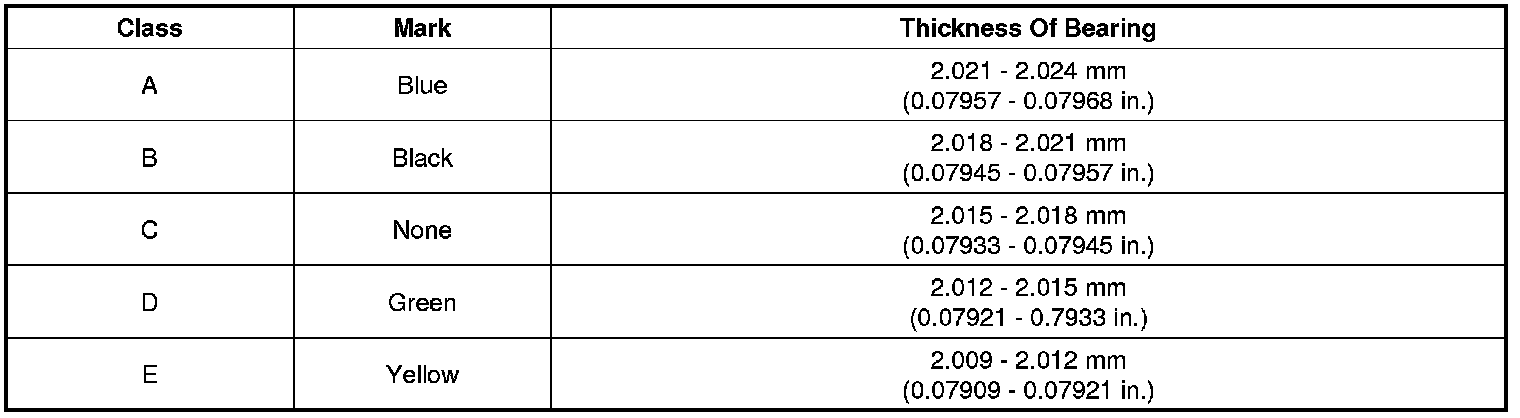 (9) If the measurement from the plastigage is too wide or too narrow, remove the upper and lower bearing and then install new bearings with the same color mark. Recheck the oil clearance.