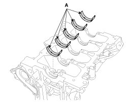 (1) Align the bearing claw with the groove of the cylinder block, and push in the 5 upper bearings (A).