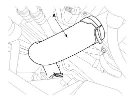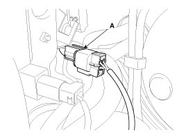 16. Disconnect the front oxygen sensor connector (A) and then remove it from the bracket. (ULEV only)