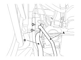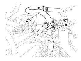 14. Disconnect the fuel hose (A) and the PCSV (Purge control solenoid valve) hose (B).
